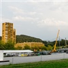 Auf dem Hundeweg neben der Kaserne, wo über 100 Neugierierige zuschauen."