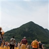 Lange Warteschlangen und 30 Grad im Schatten. Jetzt geht's weiter durch die Gassen, über einen Steg auf den floating pier. Damit nicht zu viele Personen gleichzeitig auf das ohne Geländer im Wasser schaukelenden Pier gelangen, sind pro Stunde höchstens 11'000 Personen zugelassen.
