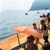 Angelangt auf der Insel herrscht Rechtsverkehr. Ein Gewühl von ankommenden Schiffstouristen, auf dem Pier und an der Uferpromenade spazierende Gäste. Ja nicht stehen bleiben beim Auf/Abgang zu den Piers, sonst ist das Gewühl noch grösser. Die Insel ist auf beiden Seiten des Floating Pier per Schiff erreichbar.