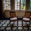 Die Kleiderbügel liegen ungeordnet in einem Transportwagen. Im nächsten Raum finden wir einen roten Fauteuil für CHF 80.--. Die Blauen sind verkauft und stehen abholbereit im grossen Saal. Das Hotel Palace Luzern wird bald in einen Dornröschenschlaf fallen.