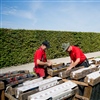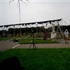 Am Dienstag vor dem Wettbewerb reiste die Crew mit Zug, Auto und Anhänger nach Hannover. Die Tage bis Samstag waren intensiv: Aufbau, Tests, Abstimmungen mit dem Veranstalter. Die Hitze stieg auf über 30 Grad – die Abschusseinrichtungen wurden vorsorglich mit Plastik abgedeckt.
