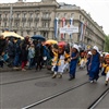 Tages-Suppen-Bar, ein Ochs am Spiess, Fritschi-Bar und viele Lozärner am Kinder-Umzug am Sechseläuten.