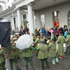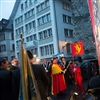 Ja, geregnet hat's an der diesjährigen Luzerner Fasnachtsplaketten Präsentation. Speziell die Enthüllung auf dem Kornmarkt war Schwerarbeit.