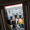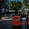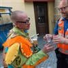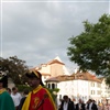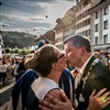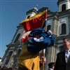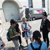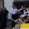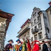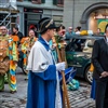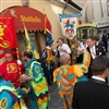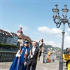 vor der Jesuitenkirche inkl. Apero. Touristen die vorbeiziehen und Einheimische die unsere Chipsli wegschmausen. Hoffentlich reichts für die über 40 aktiven Delegierten, die erwartet werden. Für Nachschub ist gesorgt, der Bierwagen Eichhof, dieses Jahr 100 Jahre jung und mit flotten 29 km/h pro Stunde noch unterwegs, hat noch einige Fässli auf der Ladebrücke für die durstigen Kehlen. Und das Photosujet, alle wollen abgelichtet werden, auch die beiden Weibel in den blauen Gewändern.
