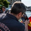 Die nächste Station ist dann wirklich bald erreicht, der Mühlenplatz. Hier endlich werde ich dem neuen Präsidenten vorgesellt. Der Weibel wird eingekleidet. Und hier findet der Apero für die vielen Zaungäste statt.