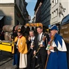 gelangen wir unter den Klängen der Noggeler zum Hirschenplatz. Schon wieder ein Halt. Genau, jetzt erfolgt die Uebergabe an die Zunft zu Safran, aus der der LFK-Präsident dieses Jahr erkoren wurde. Wie wird mein neues Zuhause sein? Wo werde ich schlafen? So viele Fragen.